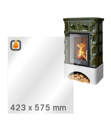 Das Glas hat die Maße 423 x 575 mm und eine Dicke von 4 mm. Es ist klar, beidseitig identisch und ideal als Ersatz für das originale Sichtglas Ihres Kaminofens.