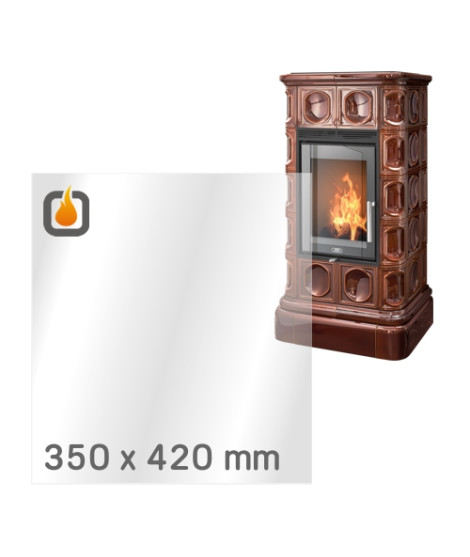 Das Glas hat die Maße 350 x 420 mm und eine Dicke von 4 mm. Es ist klar, beidseitig identisch und ideal als Ersatz für das originale Sichtglas Ihres Kaminofens.