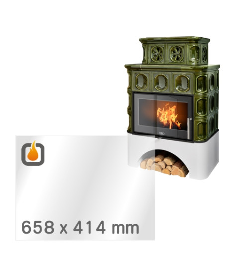 Das Glas hat die Maße 658 x 414 mm und eine Dicke von 4 mm. Es ist klar, beidseitig identisch und ideal als Ersatz für das originale Sichtglas Ihres Kaminofens.