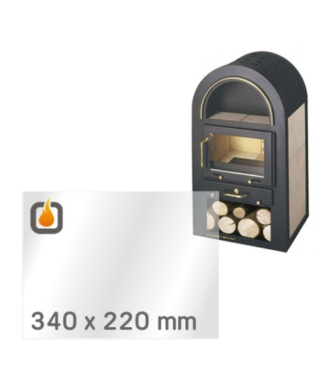Das Glas hat die Maße 340 x 220 mm und eine Dicke von 4 mm. Es ist klar, beidseitig identisch und ideal als Ersatz für das originale Sichtglas Ihres Kaminofens.