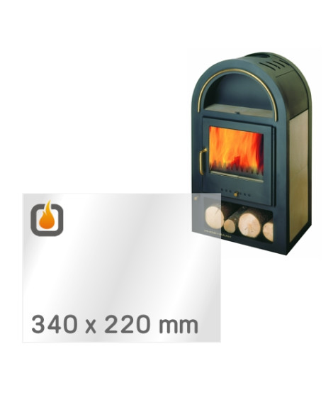 Das Glas hat die Maße 340 x 220 mm und eine Dicke von 4 mm. Es ist klar, beidseitig identisch und ideal als Ersatz für das originale Sichtglas Ihres Kaminofens.