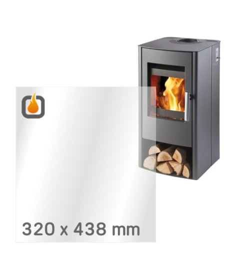 Das Glas hat die Maße 320 x 438 mm und eine Dicke von 4 mm. Es ist klar, beidseitig identisch und ideal als Ersatz für das originale Sichtglas Ihres Kaminofens.