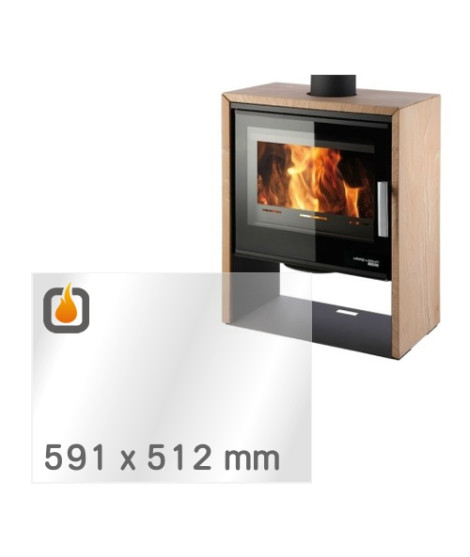 Das Glas hat die Maße 591 x 512 mm und eine Dicke von 4 mm. Es ist klar, beidseitig identisch und ideal als Ersatz für das originale Sichtglas Ihres Kaminofens.