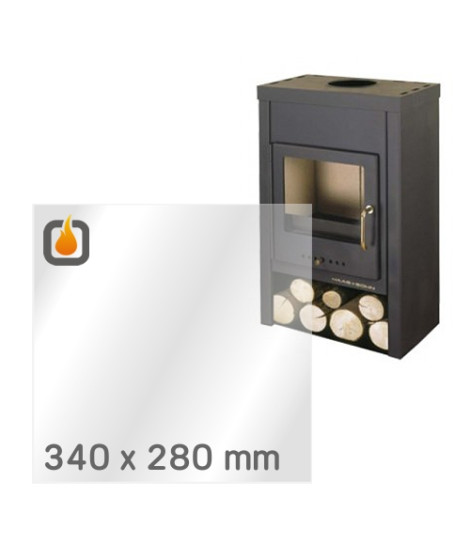 Das Glas hat die Maße 340 x 280 mm und eine Dicke von 4 mm. Es ist klar, beidseitig identisch und ideal als Ersatz für das originale Sichtglas Ihres Kaminofens.