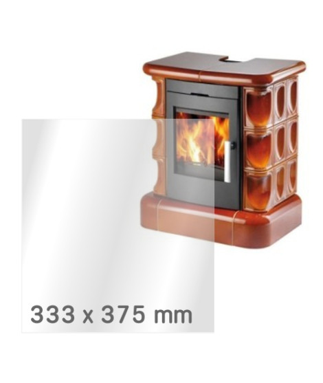 Das Glas hat die Maße 333 x 375 mm und eine Dicke von 4 mm. Es ist klar, beidseitig identisch und ideal als Ersatz für das originale Sichtglas Ihres Kaminofens.