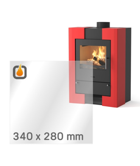 Das Glas hat die Maße 340 x 280 mm und eine Dicke von 4 mm. Es ist klar, beidseitig identisch und ideal als Ersatz für das originale Sichtglas Ihres Kaminofens.