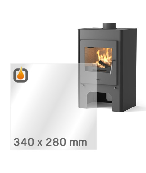 Das Glas hat die Maße 340 x 280 mm und eine Dicke von 4 mm. Es ist klar, beidseitig identisch und ideal als Ersatz für das originale Sichtglas Ihres Kaminofens.