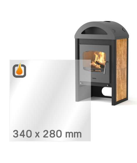 Das Glas hat die Maße 340 x 280 mm und eine Dicke von 4 mm. Es ist klar, beidseitig identisch und ideal als Ersatz für das originale Sichtglas Ihres Kaminofens.