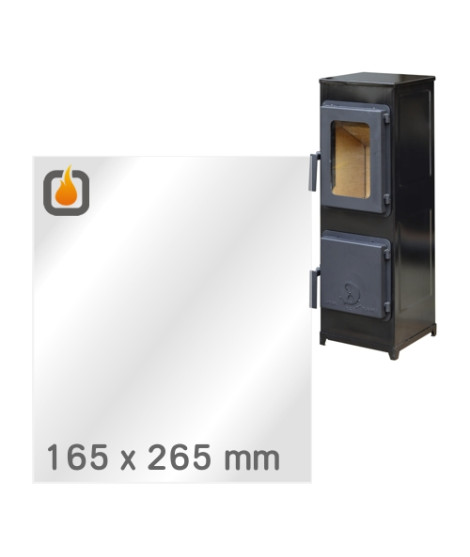 Das Glas hat die Maße 165 x 265 mm und eine Dicke von 4 mm. Es ist klar, beidseitig identisch und ideal als Ersatz für das originale Sichtglas Ihres Kaminofens.
