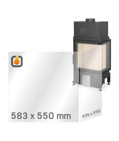 Die Ersatzt-Feuerfestprismenscheibe der Stärke 4mm mit den Maßen 583 x 550 mm und 339 x 550 mm für Kamineinsatz IMPRESSION R/L 2g S 58.60.34.21.