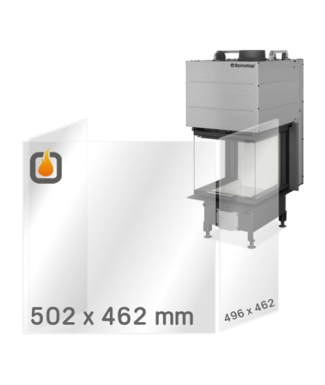 Die Ersatzt-Feuerfestprismenscheibe der Stärke 4mm mit den Maßen 502 x 462 mm (1 Stück) und 496 x 462 mm (2 Stück) für Kamineinsatz HEAT U 3G L 50.52.50.24.