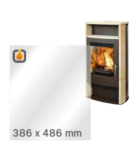 Das Glas hat die Maße 386 x 486 mm und eine Dicke von 4 mm. Es ist klar, beidseitig identisch und ideal als Ersatz für das originale Sichtglas Ihres Kaminofens.