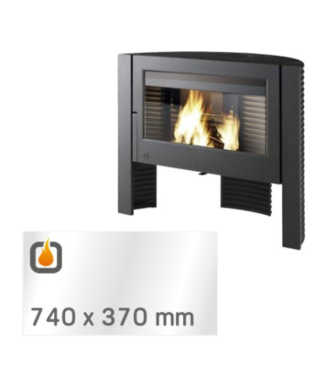 Das Glas hat die Maße 740 x 370 mm und eine Dicke von 4 mm. Es ist klar, beidseitig identisch und ideal als Ersatz für das originale Sichtglas Ihres Kaminofens.