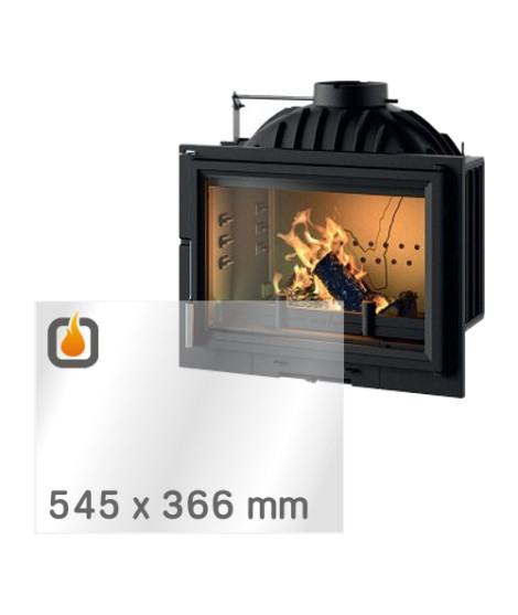 Das Glas hat die Maße 545 x 366 mm und eine Dicke von 4 mm. Es ist klar, beidseitig identisch und ideal als Ersatz für das originale Sichtglas Ihres Kaminofens.